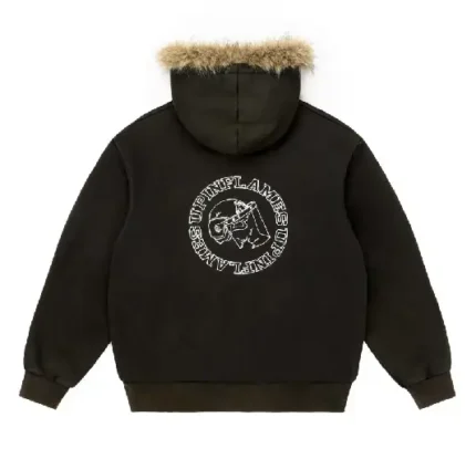 Up In Flames Faux Fur Hoodie Washed Black